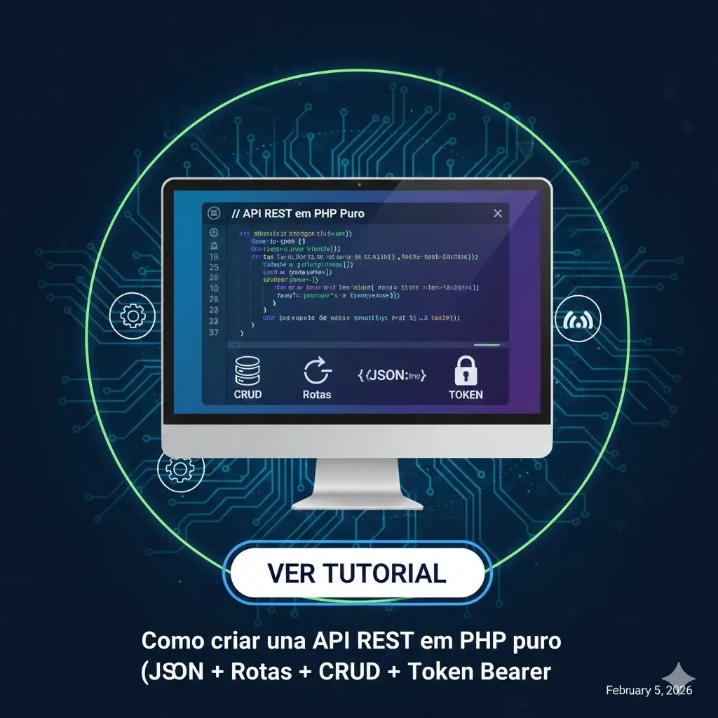 Neste guia você vai montar uma API REST em PHP puro (sem framework) com: