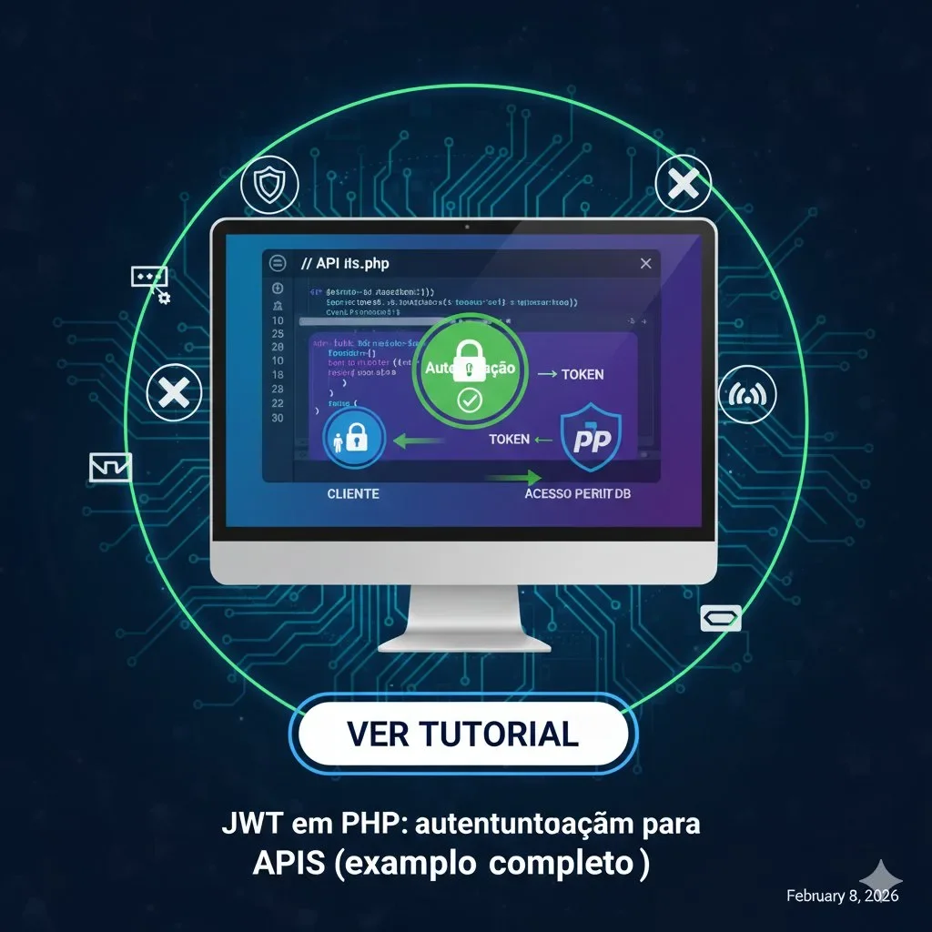 JWT (JSON Web Token) é um padrão aberto para autenticação stateless, muito usado em APIs REST. Em vez de sessão no servidor, o usuário recebe um token assinado, que é enviado a cada requisição.