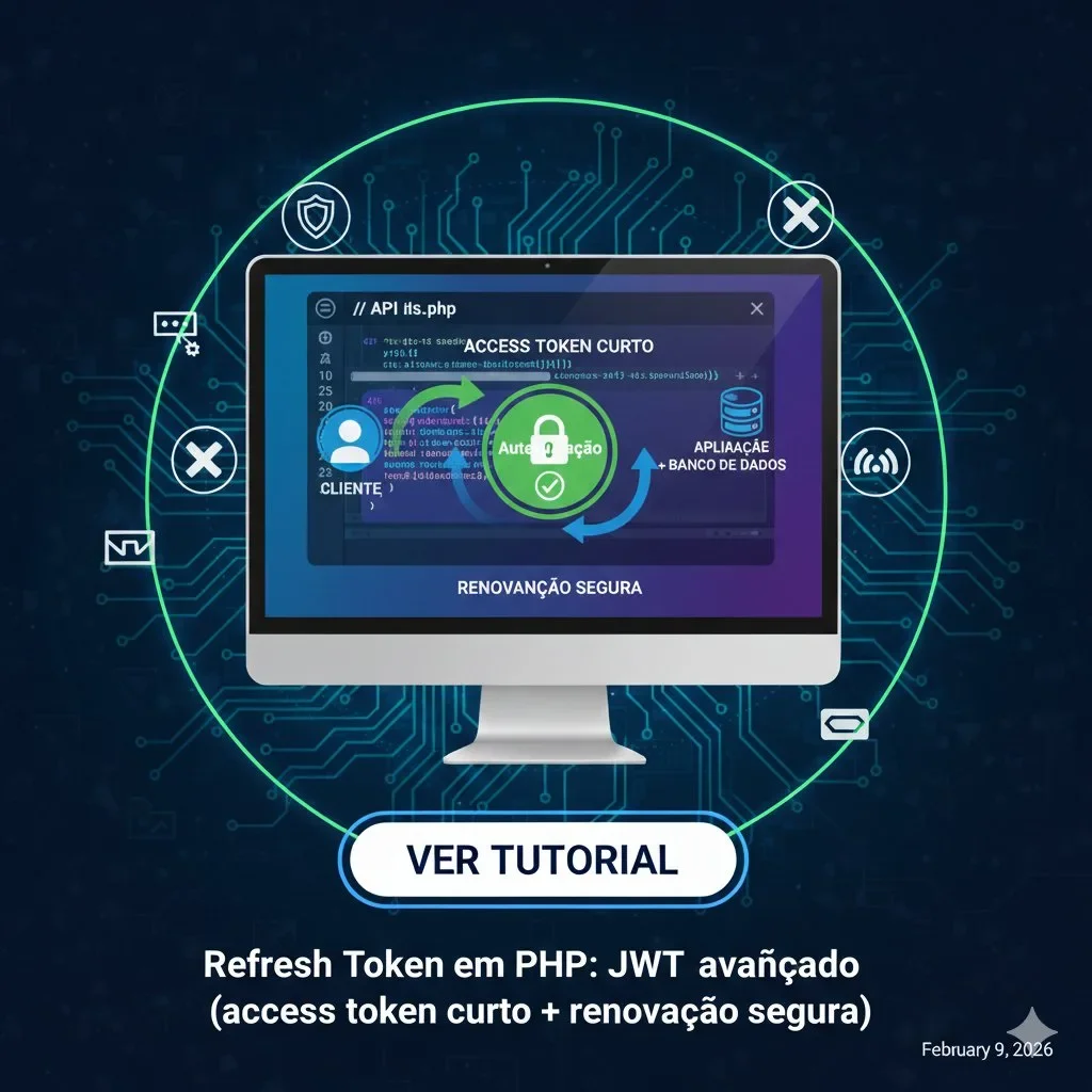 Authorization: Bearer./api/auth/refreshPOST /api/auth/login → gera tokensPOST /api/auth/refresh → renova access (e rotaciona refresh)POST /api/auth/logout → revoga refreshGET /api/me → rota protegida com access tokenGuardar refresh token no banco permite revogar, rotacionar e controlar sessões. Exemplo de tabela simples: